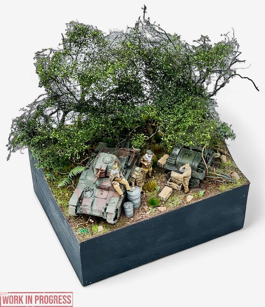 Back to the project, during the assembly of the tank, while I was digging through the reference photos, I came across a photo with some French soldiers and a caisson cart in the background. Therefore my vignette idea was conceptualized. For this reason, I believe that 2 horses, a cart and a few French soldiers, which I printed with my 3D printer, took my vignette to the next level. As a result, it was a work that I felt comfortable with, except for a few mistakes that caught my eye in the photos.See you next time. Keep with miniafv.