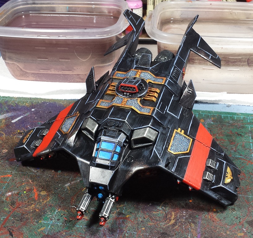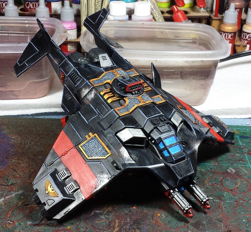 Not a whole lot changed on the Corvus front other than a little more weathering and some edge highlighting of the red wing stripes (though they are blown out in the pictures somewhat). Really dig this model, but it would be 100% cooler if it was 20% larger. There's just a bit of dissonance to me between its stats and its appearance. Still, best flyer GW was released in plastic for quite some time!