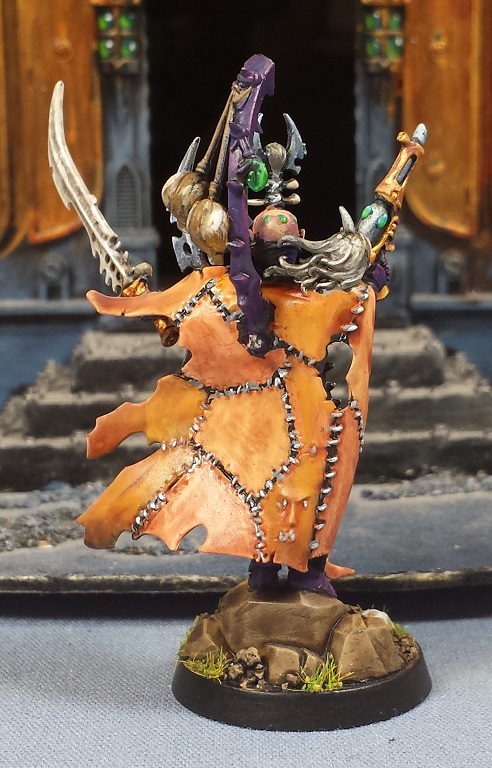 First up, Archon Zaergarn Kul of the Kabal of the Splintered Talon. Not a lot of changes from the earlier pics, finished up the face and cleaned up a few bits, flocked and sealed. Easy peasy!