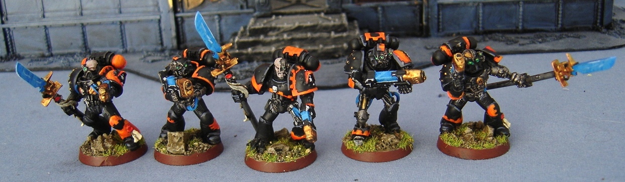 After messing around with the Librarian Dread to get a feel for the colors, I decided to take a crack at the Sekhmet Terminators for the Thousand Sons.