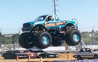 The truck was so blankety blank big, that's probably what saved my car worse damage than it has. I'm surprised it didn't go right over the top of me and shave off the top of the car. These trucks are the macho thing to drive out here - I think the size of the drivers' "you know whats" might correspond in the opposite direction of the size of the trucks. Have to be driving monster trucks for daily use for some wierd reason, huh? Interesting that "Dragonness," ex-employee drove one of those.