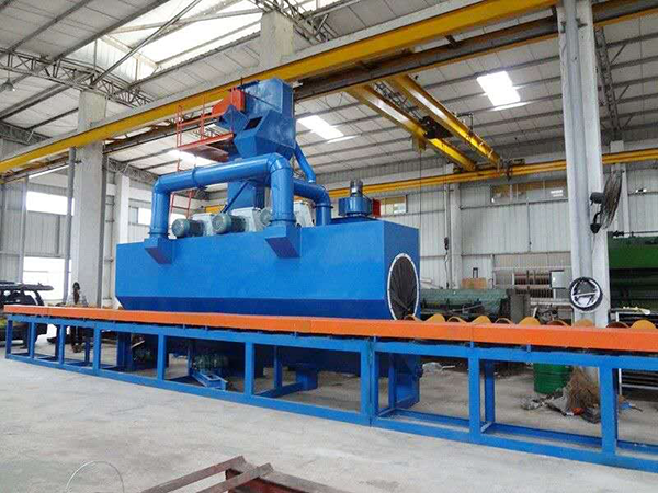 該系列拋丸清理機是通過臺車運載工件進入室體后,臺車自轉工件進行拋丸處理,用于對大中型鑄管外壁的拋丸清理,以去除工件表面的粘砂、鐵銹、氧化皮、污物等,使工件表面呈金屬光澤,消除工件內應力,提高工件抗疲勞強度,增加工件噴漆時的漆膜附著力,并最終達到提高工件表面及內在質量的目的。