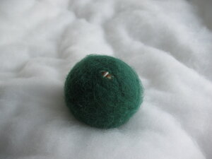 Поначалу я делала одноцветные шарики, а потом осмелела :) Покажу еще, что бывает, когда шерсть неудачно ляжет. В таком случае, заготовки получаются с проплешинами, но это поправимо! На лысинку инвалида пристраиваем еще кусочек шерсти и заряжаем его в машинку еще раз