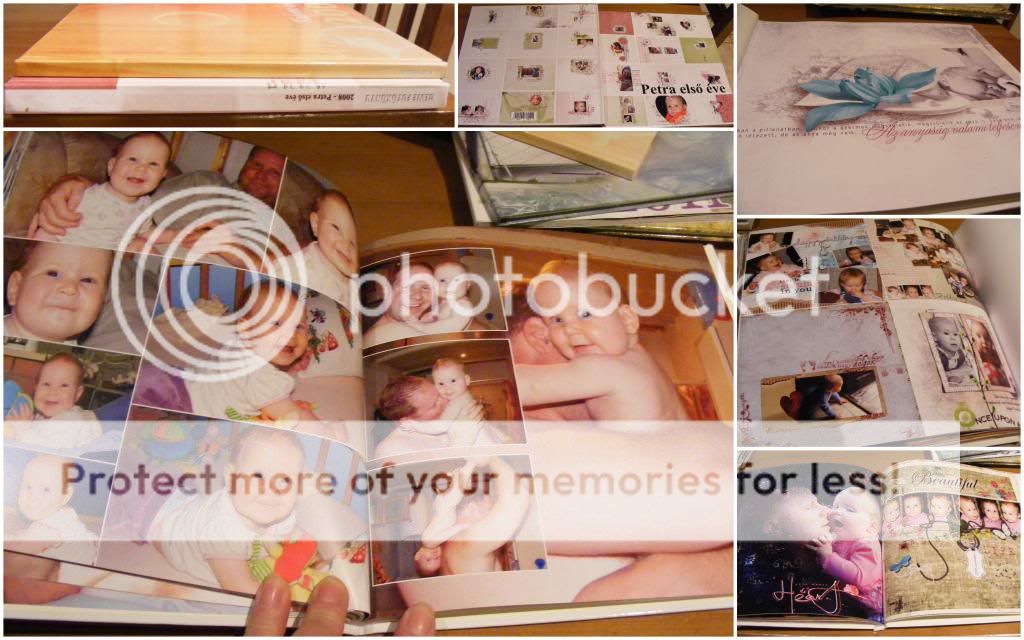 4. Ekkor el is határoztam, hogy minden évről lesz egy könyv, időközben el is készültek, de ezek időhiány miatt, no meg férjtől jövő ráhatásra nem szkreppelt fotókönyvek, a sok fotó volt a lényeg, a kollázs jelleg dominál, eltekintve a borítóktól . Itt már direkt ennél a 21x21cm-es méretnél maradtam, hogy egyformák legyenek, de a puha borítót keményre cseréltem! :)