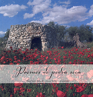 Per via postal m’arriba a casa, sol·lícit, el llibret Poemes de pedra seca, editat per Cossetània Edicions. El volumet, de 17×18 cm. conté fotografies de Josep Vallès i poemes de Nati Soler i s’obri amb un pròleg de Jordi Gabarró i una introducció del mateix Vallès. En la introducció es fa un recorregut per totes les tipologies de construccions en pedra, un recorregut erudit i amorós alhora, un recorregut que és una crida a la protecció i la preservació d’aquestes obres d’art anònimes.