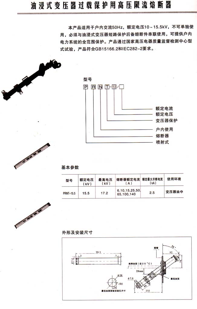 限流式熔管,可以安裝在任何型號(hào)的跌落上,F(xiàn)在為了將線路商議安裝的跌落熔斷器直接換成限流熔管,所以,首先生產(chǎn)的型號(hào)選擇了RM11型,但由于是限流熔管,所以叫做XRW11型。