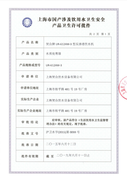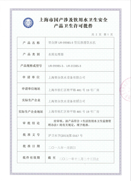 東莞市賀一飲水設備有限公司為賀眾牌飲水設備東莞授權總代理商,證號24019,負責上海賀眾飲水設備所產制的賀眾牌相關產品的銷售以及售后服務。