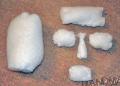 Шаг 3. Из остальных полосочек поменьше делаем подушечки-накладки (лоб, две щеки, подбородок и нос). Все прошиваем нитками, чтобы не разваливалось.