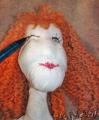 Шаг 11. И после этого мы просто раскручиваем крученые нитки, чтобы получились более густые кудряшки (хотя если кому-то нравится, можно оставить и так). Лохматость куклы зависит от того, сколько ниток вы возьмете. Если хотим очень лохматую, то вторым этапом можно еще раз пришить нитки на макушку. |