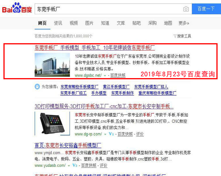 東莞手板廠(chǎng) : 2019-02-28上線(xiàn) 2019-03-05百度第18名 2019-03-19百度第8名 2019-03-25百度第2名(排名第1名的網(wǎng)站www.dgsbc.net也是我公司管理優(yōu)化的網(wǎng)站)