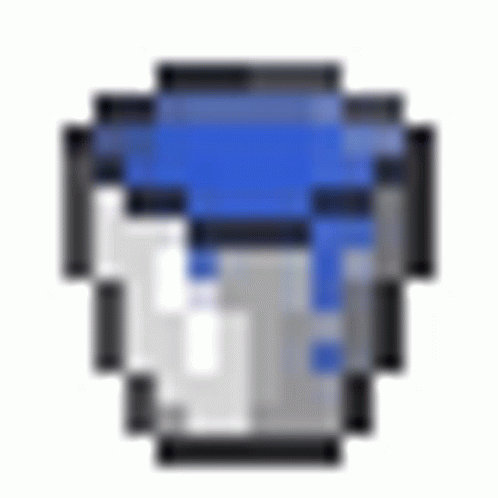 Descripció del contingut: a pixel art bucket with blue paint dripping out of it on a white background .