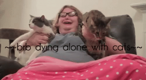 Descripció del contingut: a woman is laying on a bed with two cats and the words " brb dying alone with cats "