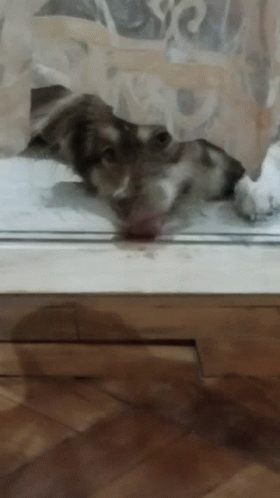 Descripció del contingut: a dog looking out a window with a curtain behind it that says se