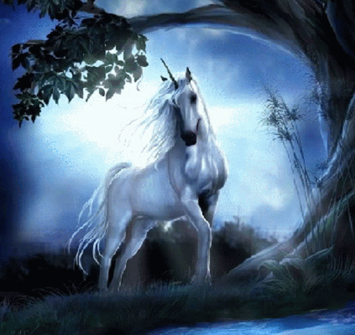Descripció del contingut: a white unicorn is standing under a tree in a field