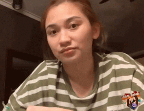 Descripció del contingut: a woman wearing a green and white striped shirt is looking at the camera