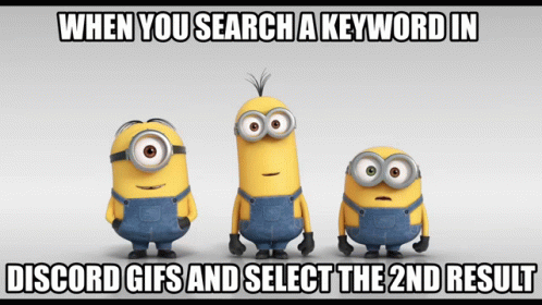 Descripció del contingut: three minions are standing next to each other with the caption when you search a keyword in discord