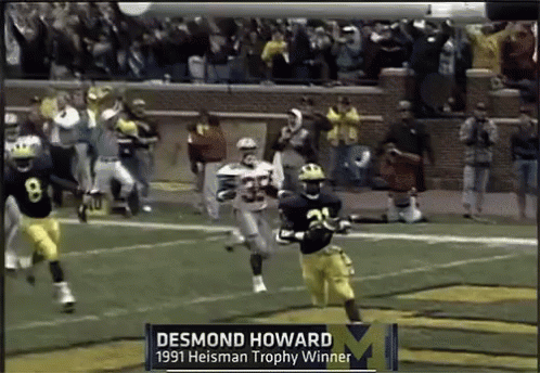 Descripció del contingut: a video of a football game with the name desmond howard on the bottom