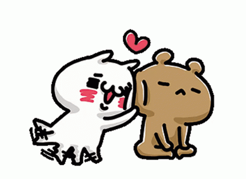 Descripció del contingut: a cartoon of a cat kissing a brown bear with a heart on its head .