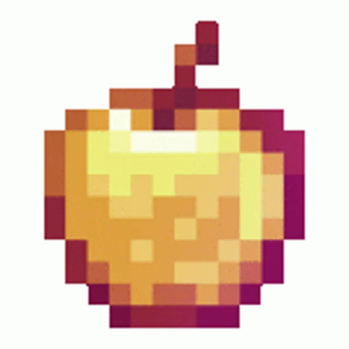 Descripció del contingut: a pixel art illustration of a golden apple with a stem on a white background .