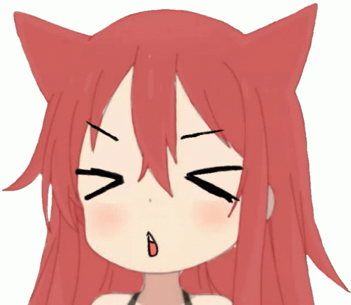 Descripció del contingut: a drawing of a girl with red hair and cat ears making a face