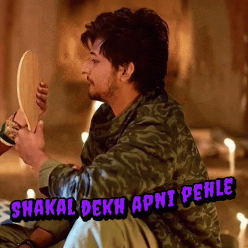 Popis obsahu: a man is looking at himself in a mirror while sitting down .