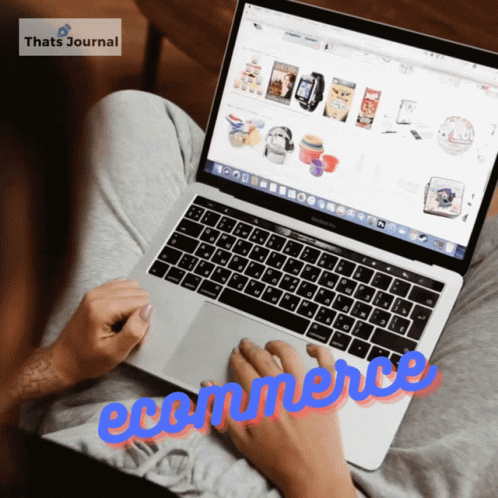 Popis obsahu: a person is typing on a laptop that says ecommerce on the bottom