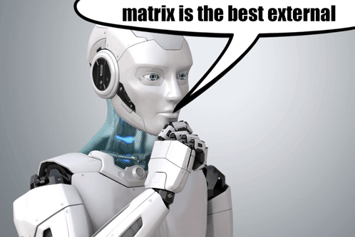 Popis obsahu: a robot with a speech bubble saying " matrix is the best external "
