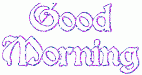 Popis obsahu: a white background with the words good morning written in purple glitter