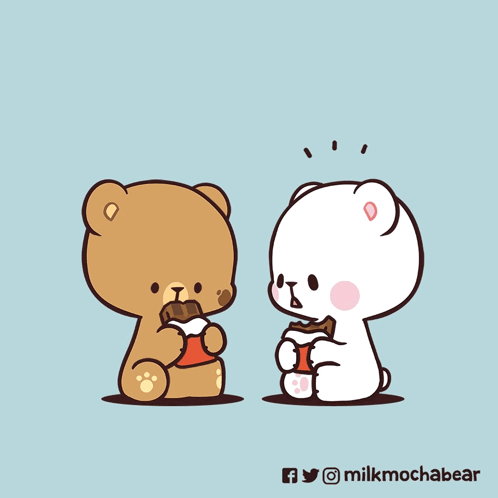 Popis obsahu: a cartoon of a teddy bear kissing another teddy bear who is holding a piece of chocolate