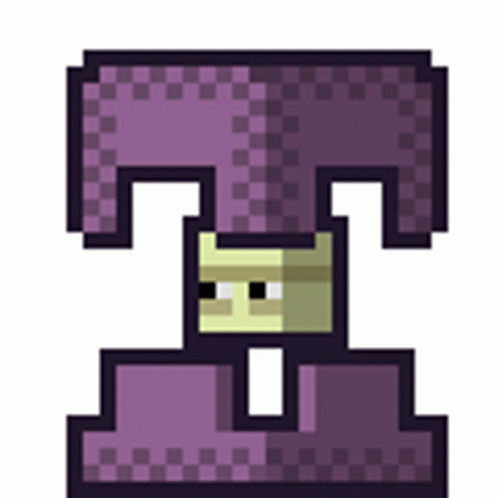 የይዘት መግለጫ: a pixel art drawing of a purple hat with a skull on it
