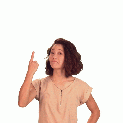 የይዘት መግለጫ: a woman is pointing up with the word fact behind her