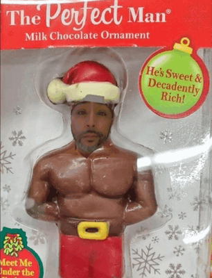 የይዘት መግለጫ: a perfect man milk chocolate ornament with a santa hat on his head