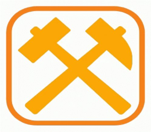 Inhoudbeskrywing: an orange icon with two crossed hammers on it