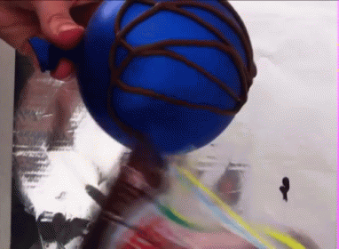 Kontent təsviri: a person is holding a blue balloon with chocolate icing on it