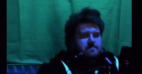 Kontent təsviri: a man with a beard is wearing headphones in front of a green curtain