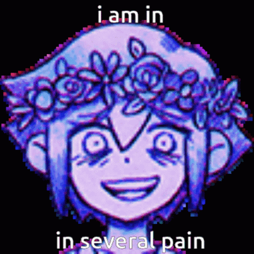 কন্টেন্টের বিবরণ: a pixel art of a girl with a flower crown on her head and the words i am in in several pain