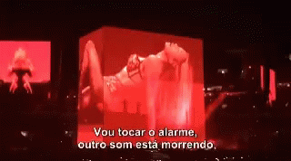 কন্টেন্টের বিবরণ: a woman is laying in a red box with the words vou tocar o alarme