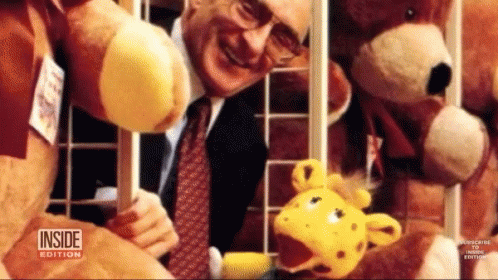 কন্টেন্টের বিবরণ: a man in a suit and tie is holding a stuffed animal with inside edition written on the bottom