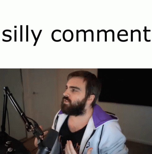 কন্টেন্টের বিবরণ: a man with a beard is speaking into a microphone with the words " silly comment " above him