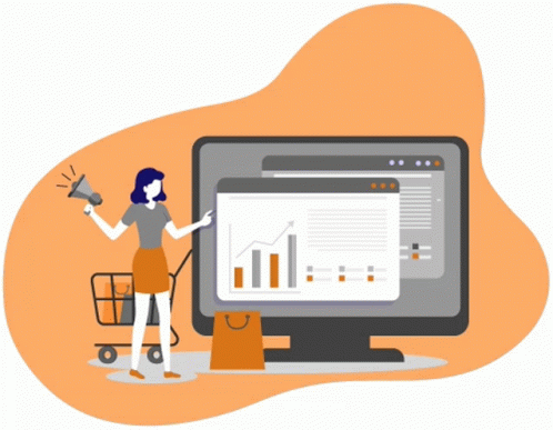 Апісанне змесціва: a woman is holding a megaphone in front of a computer screen