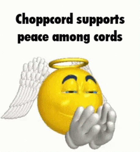 Апісанне змесціва: a smiley face with angel wings and the words chopcord supports peace among cords below it