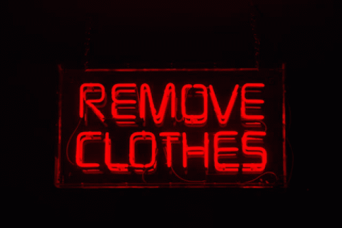 Апісанне змесціва: a neon sign that says remove clothes is lit up in red