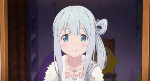 Апісанне змесціва: a girl with white hair and blue eyes is wearing a fur coat and necklace .
