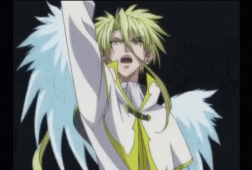 Описание на съдържанието: a cartoon character with white wings and a yellow scarf around his neck