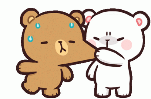 - Описание на съдържанието: two teddy bears are standing next to each other and one of them is blowing another bear 's nose