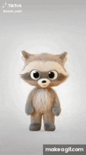 Описание на съдържанието: a cartoon raccoon with big eyes is standing on its hind legs .