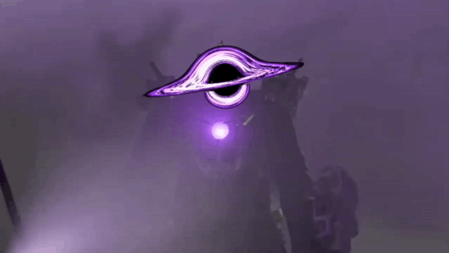 Opis sadržaja: a black hole with a purple light coming out of it is surrounded by purple smoke .