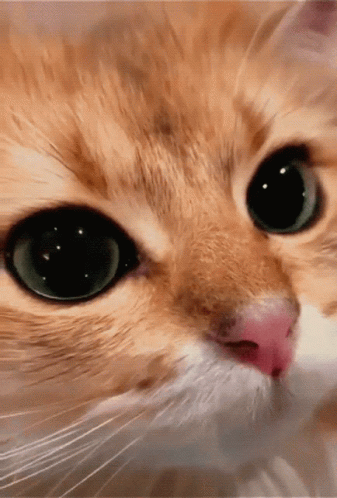 Opis sadržaja: a close up of a cat 's face with a pink nose and green eyes