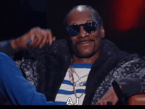 Opis sadržaja: snoop dogg wearing sunglasses and a striped shirt with aj written on the bottom