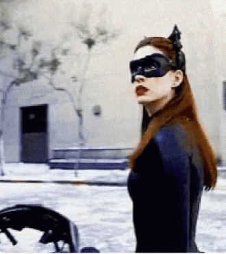 કન્ટેન્ટનું વર્ણન: a woman wearing a cat mask and sunglasses stands in the snow